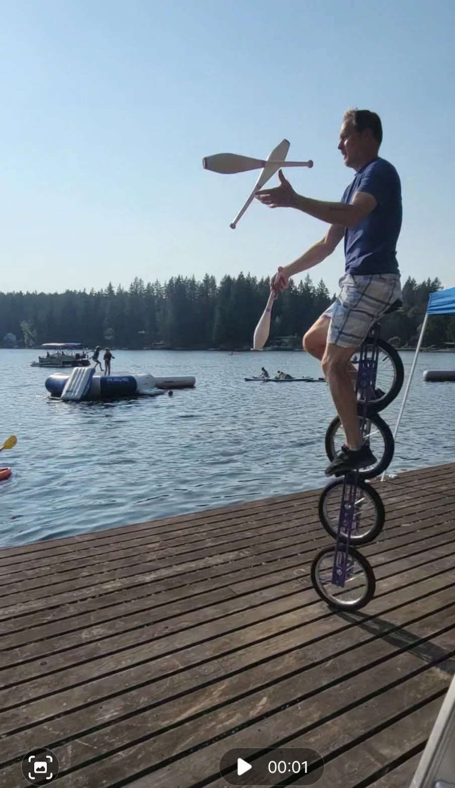 Nate has been juggling and unicycling for over 30 years. He has performed at Seattle International Juggling Festival, Bellingham Circus Guild, Portland Juggling Festival, Folk Life Festival, Bumper Shoot, University Street Fair, Edmonds Farmers Market, and West Seattle Street Fair. From School assembly’s, to girl scout camps, Nate enjoys entertaining and working with kids. Nate is a street performer, in 2008 he performed through Europe where he ended his trip at the European Juggling Convention in 2008. He’s unofficially broken world records juggling on his unicycle. He continues to push himself to juggle and try new things.
